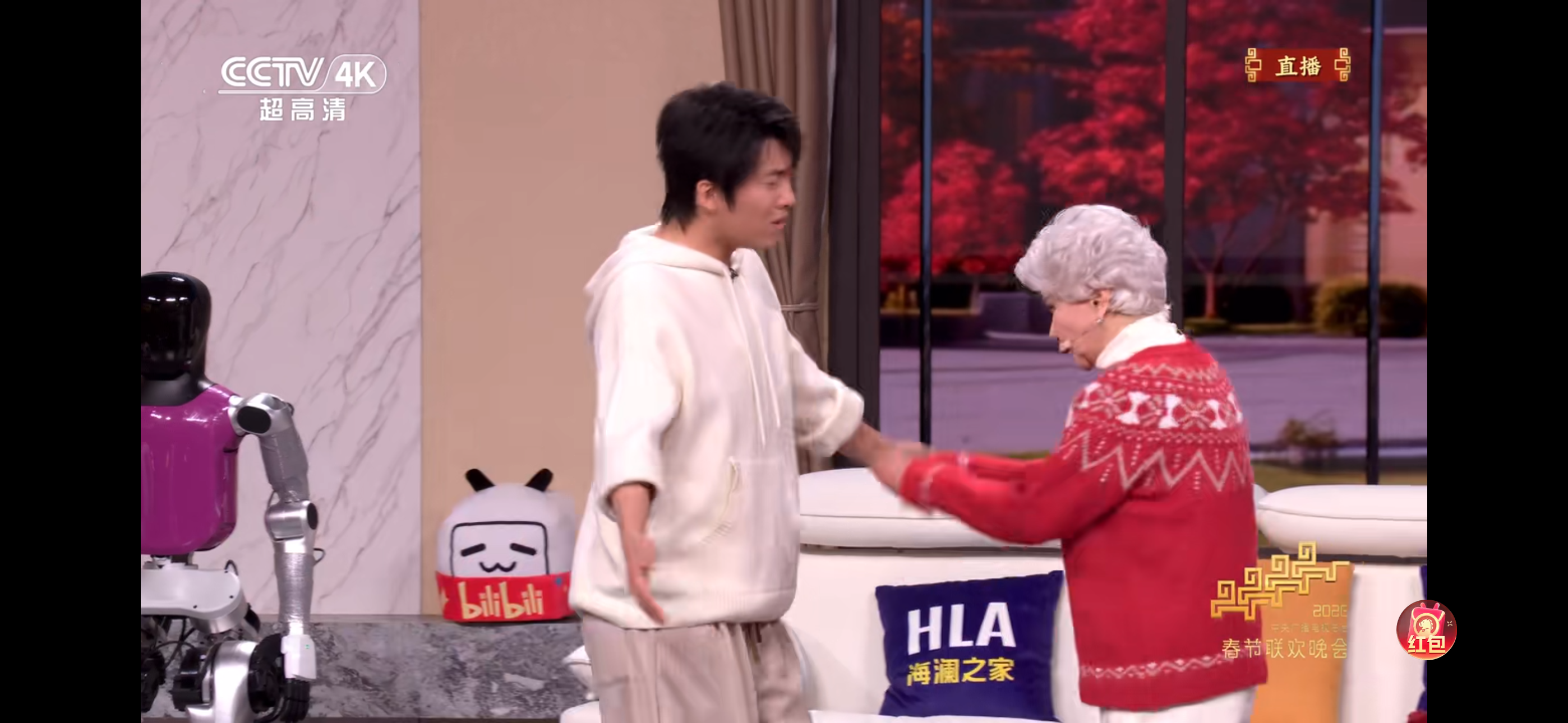 三十年后的《奶奶的最爱》中,蔡明与机器人“小布米”搭档,演绎祖孙间的温情牵挂。如果说1996年的“菜花”是一个被操控、被审视的“他者”,那么2026年的“小布米”则有了巨大的飞跃——它变得更有主动性,更懂得情感互动。